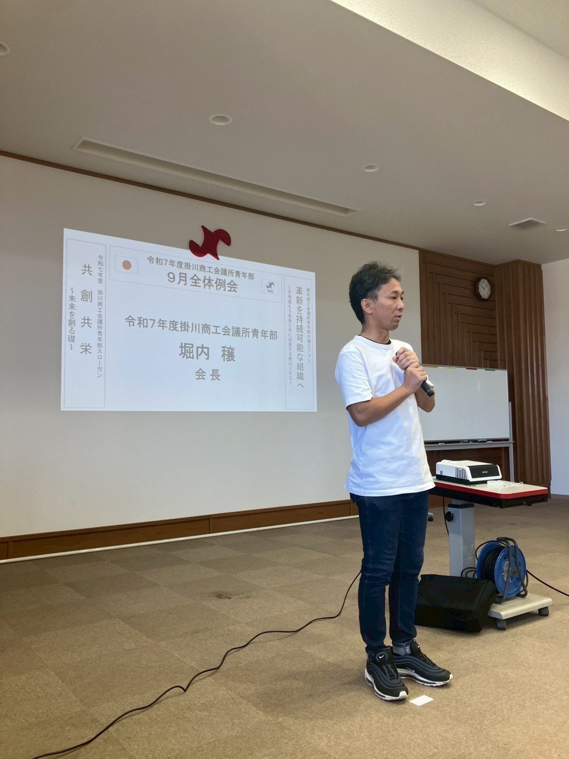 令和7年9月21日(日)、スタートアップ委員会では「天浜線でつながる絆の旅」と題した9月全体例会を開催しました。まずは掛川商工会議所にて全体例会を行い、各委員会の活動報告や今後の活動について共有しました。YEGメンバーの家族にも見学してもらい、普段の活動を少し知ってもらうことができました。