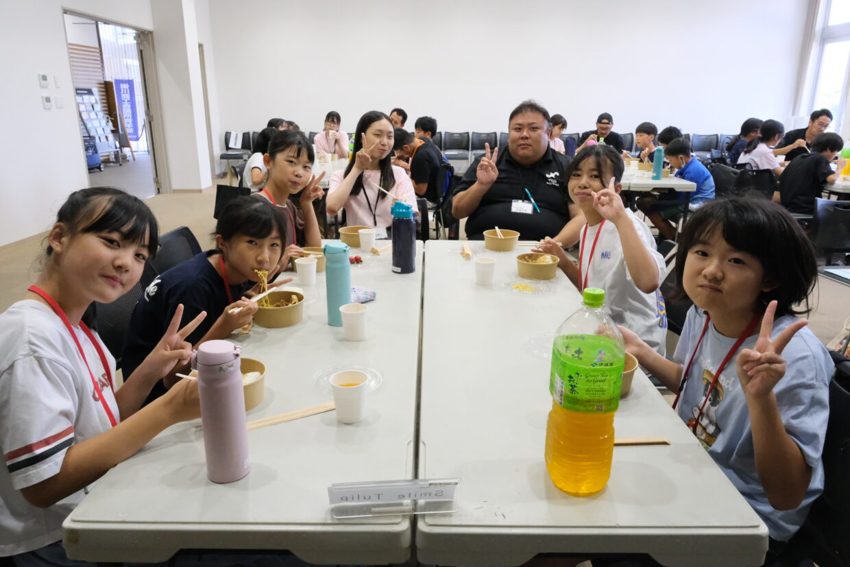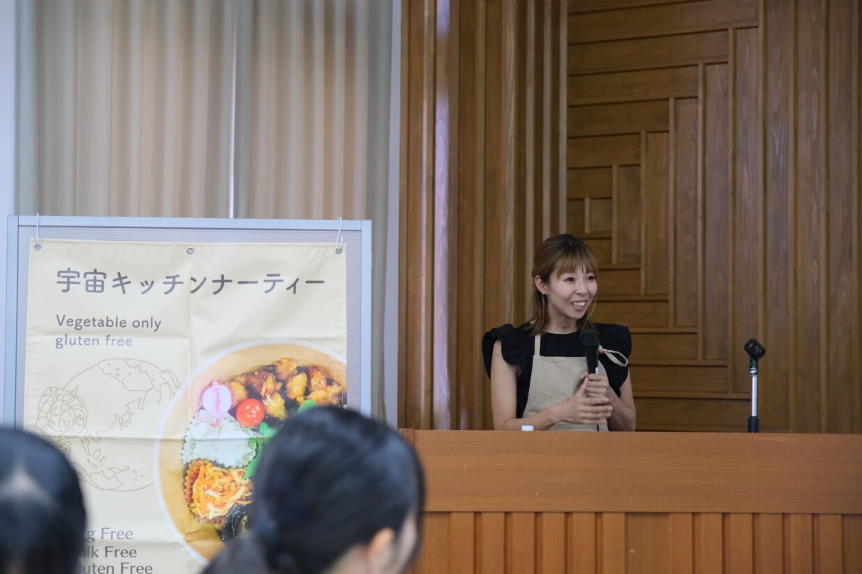 そして昼食では『宇宙キッチン ナーティー』さんに、イベントで出店している様子に近い形でブースを設けていただき、実際にお弁当やデザートを食べさせていただきました。盛り付けや商品の並べ方、ポップなど子どもたちの販売実践のヒントになることがたくさんあり、子どもたちも楽しみながら真剣に学んでいました。